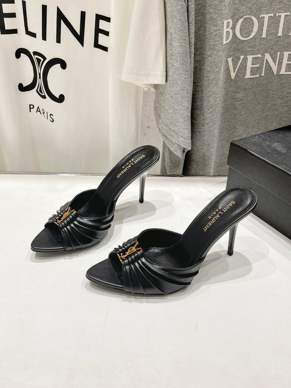 Saint Laurent Babylone Mules Bordeaux Black